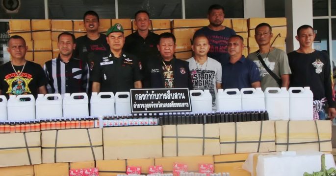 นครศรีธรรมราช 23 ก.พ.-ตำรวจเมืองคอนบุกทลายแหล่งขายยาแก้ไอรายใหญ่ ยึดของกลางล็อตมหึมา มูลค่ากว่า 4 ล้านบาท หลังชาวบ้านแจ้งเบาะแส ลักลอบขายส่งให้ร้านค้าและวัยรุ่นนำไปผสมน้ำต้มใบกระท่อมทำเป็นยาเสพติดสูตร 4 คูณ 100 มานานแล้ว วันนี้(23 ก.พ.)ที่กองบังคับการตำรวจภูธรจังหวัดนครศรีธรรมราช พ.ต.อ.โชคดี ศรีเมือง ผกก.กก.สส.ภ.จว.นครศรีธรรมราช แถลงข่าวการตรวจยึดยาแก้ไอล็อตใหญ่ ได้ของกลางจำนวนมาก รวมมูลค่ากว่า 4 ล้านบาท ประกอบด้วย ยาแก้ไอ 30,000 ขวด ยาแก้ไอที่บรรจุในแกลลอน ขนาด 1 ลิตร จำนวน 39 แกลลอน ต้นกระท่อม 1 ต้น หนัก 1 กก. ขวดสำหรับบรรจุยาแก้ไอ จำนวน 9,000 ขวด กระสุนปืนลูกซอง เบอร์ 12 จำนวน 150 นัด โพยรายชื่อร้านค้าที่เป็นลูกค้า พร้อมเบอร์โทรศัพท์กว่า 100 แผ่น และบัญชีรายรับรายจ่ายอีกจำนวนมาก […]