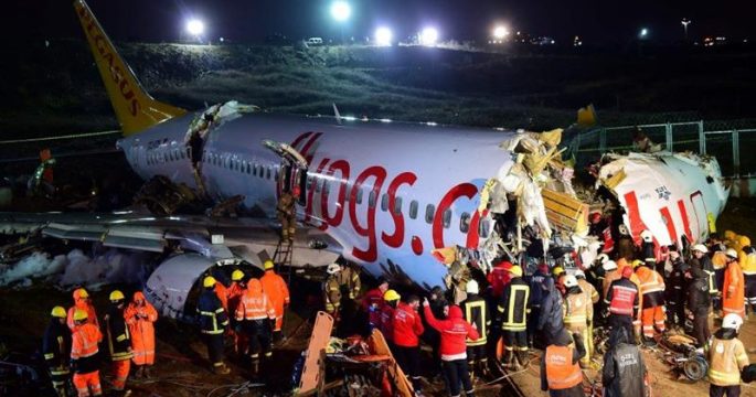 เครื่องบินโดยสารลำหนึ่งไถลออกออกนอกรันเวย์ ขณะลงจอดที่สนามบินในนครอิสตันบูล ของตุรกี ทำให้เครื่องบินได้รับความเสียหายอย่างหนัก