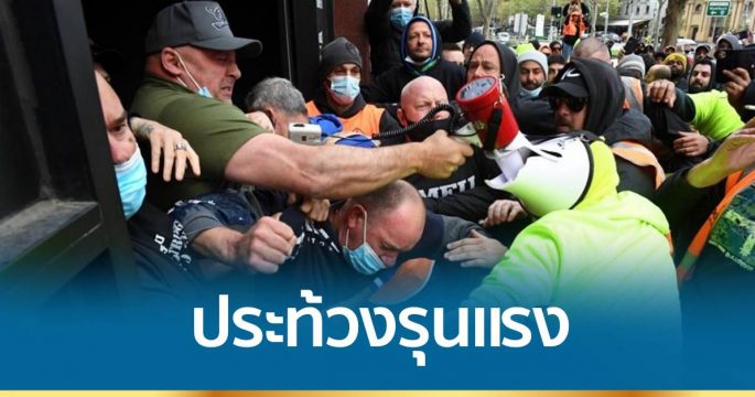 เมลเบิร์น 21 ก.ย. – ตำรวจนครเมลเบิร์นของออสเตรเลียใช้กระสุนพริกไทยและกระสุนยางสลายกลุ่มผู้ชุมนุมหลายพันคนที่ฝ่าฝืนคำสั่งอยู่แต่ในบ้านด้วยการออกมารวมตัวกันสร้างความเสียหาย ปิดกั้นทางด่วน และทำร้ายเจ้าหน้าที่บาดเจ็บ 3 นาย ในขณะที่ตำรวจจับกุมผู้ชุมนุมได้กว่า 40 คน สำนักข่าวรอยเตอร์รายงานว่า วันนี้เป็นวันที่สองที่เกิดเหตุชุมนุมประท้วงต่อต้านมาตรการล็อกดาวน์ในนครเมลเบิร์น หลังทางการรัฐวิกตอเรีย ซึ่งมีนครเมลเบิร์นเป็นเมืองเอก สั่งปิดสถานที่ก่อสร้างเป็นเวลา 2 สัปดาห์ โดยระบุว่า การเดินทางของแรงงานก่อสร้างทำให้เกิดการแพร่ระบาดของโรคติดเชื้อไวรัสโคโรนา 2019 หรือโควิด-19 นายเชน แพตตัน ผู้บัญชาการตำรวจรัฐวิกตอเรีย กล่าวกับสำนักข่าวรอยเตอร์ว่า เหตุประท้วงดังกล่าวถือเป็นสถานการณ์ที่ท้าทายอย่างมากและเป็นการชุมนุมที่ผิดกฎหมาย ขณะที่สถานีโทรทัศน์ของออสเตรเลียและสื่อโซเชียลมีเดียเผยแพร่คลิปวิดีโอที่แสดงให้เห็นว่า กลุ่มผู้ชุมนุมพากันเดินขบวนบนท้องถนน จุดพลุควัน ร้องเพลง และทำลายรถตำรวจ โดยที่มีตำรวจม้าและเจ้าหน้าที่สวมชุดปราบจลาจลล้อมรอบ กลุ่มผู้ชุมนุมไม่ได้มีเพียงแรงงานก่อสร้าง แต่ยังมีผู้ต่อต้านการบังคับฉีดวัคซีนและการขยายคำสั่งล็อกดาวน์รัฐวิกตอเรีย โดยได้ประณามทั้งวัคซีน นายแดเนียล แอนดรูวส์ มุขมนตรีรัฐวิกตอเรีย และแกนนำสหภาพแรงงานที่สนับสุนนการฉีดวัคซีน นายแอนดรูว์ระบุว่า การกระทำที่รุนแรงและขัดขวางคำสั่งของทางการไม่ช่วยให้ยอดผู้ป่วยติดเชื้อโควิดรายใหม่ลดลง แต่กลับทำให้เชื้อไวรัสโคโรนาแพร่กระจายมากยิ่งขึ้น ทั้งนี้ คำสั่งปิดสถานที่ก่อสร้างมีขึ้นหลังเกิดการประท้วงต่อต้านคำสั่งฉีดวัคซีนที่ทวีความรุนแรงขึ้นเมื่อวันจันทร์ โดยที่รัฐวิกตอเรียกำหนดให้แรงงานก่อสร้างทุกคนต้องเข้ารับการฉีดวัคซีนป้องกันโรคโควิดภายในสัปดาห์นี้. -สำนักข่าวไทย