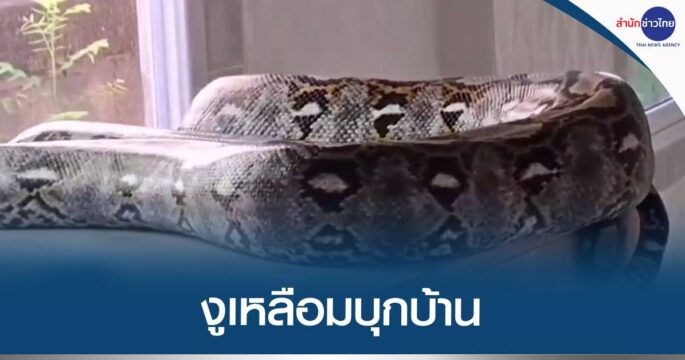 นนทบุรี 5 ส.ค. – ผวา! งูเหลือมยาว 5 เมตร บุกบ้านย่านบางใหญ่ จ.นนทบุรี หวังเข้ามากินแมว เจ้าของบ้านโทรแจ้งเจ้าหน้าที่มาช่วยจับ. – สำนักข่าวไทย