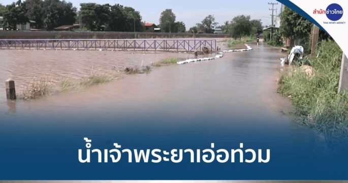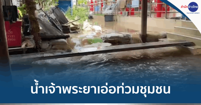 น้ำเจ้าพระยาล้นข้ามถนนเข้าท่วมบ้านกว่า 30 หลังคาเรือน ต.ชีน้ำร้าย อ.อินทร์บุรี จ.สิงห์บุรี ส่วนชุมชุนริมท่าน้ำปากเกร็ด เริ่มกระทบ