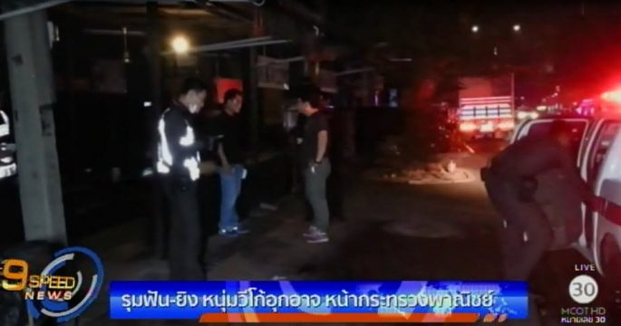 กลุ่มชายฉกรรจ์ 4 คน รุมทำร้าย และใช้ปืนยิงชาย วัย 26 ปี บาดเจ็บสาหัส บริเวณหน้ากระทรวงพาณิชย์ อำเภอเมืองนนทบุรี