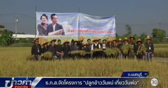 ธ.ก.ส.นนทบุรี จัดโครงการ “ปลูกข้าววันแม่ เกี่ยววันพ่อ” ส่งเสริมเกษตรกรเรียนรู้ระยะเวลาที่เหมาะสมในการปลูกข้าว และสร้างมูลค่าให้กับผลิตภัณฑ์