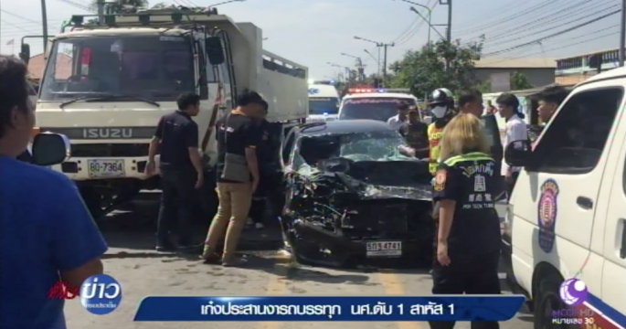 นักศึกษาขับเก๋งสวนเลนชนประสานงารถบรรทุกสิบสองล้อเสียชีวิตทันที 1 ราย ส่วนอีกคนบาดเจ็บสาหัส