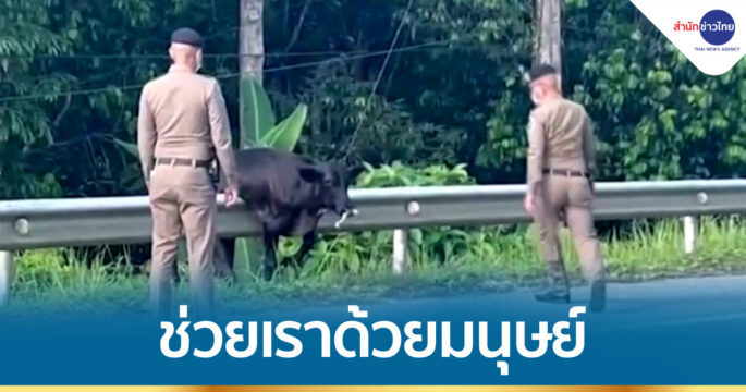 ชาวบ้านชื่นชมเจ้าหน้าที่ตำรวจทางหลวงชายแดนใต้ 3 นาย ช่วยเหลือวัวที่ตัวพาดติดอยู่กับเหล็กกั้นถนนทางโค้ง รอยต่อหลักกิโลเมตรที่ 81 กับ 82 อ.บันนังสตา จ.ยะลา สุดท้ายช่วยได้สำเร็จ