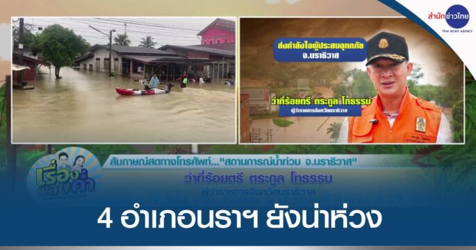 ผู้ว่าฯ นราธิวาส เผยน้ำท่วมหลายพื้นที่เริ่มคลี่คลาย ใกล้เข้าสู่ภาวะปกติ เหลือ 4 อำเภอ ยังน่าห่วง เพราะยังมีน้ำท่วมขังสูง