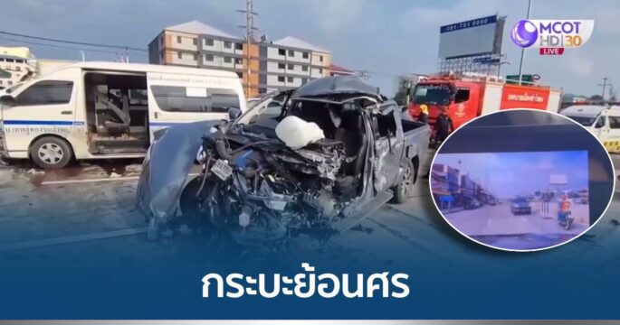 กระบะวิ่งย้อนศร ชนระเนระนาด รถบรรทุกแก๊สเทกระจาด บาดเจ็บ 18 ราย