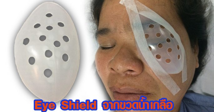 รพ.ศรีสังวรสุโขทัย ประดิษฐ์ ฝาครอบตา (Eye Shield) ป้องกันลม ฝุ่นละออง หลังผ่าตัด จากขวดน้ำเกลือ ที่ใช้แล้ว ลดต้นทุน ลดโลกร้อน