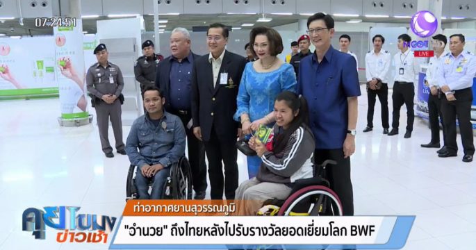 “อำนวย เวชวิฐาน” นักกีฬาคนพิการลูกขนไก่หญิงยอดเยี่ยมของสหพันธ์แบดมินตันโลก เดินทางกลับถึงไทย ท่ามกลางการต้อนรับอย่างอบอุ่น เมื่อคืนที่ผ่านมา