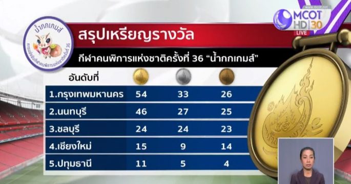 กีฬาคนพิการแห่งชาติครั้งที่ 36 ที่จังหวัดเชียงราย “น้ำกกเกมส์” นักกีฬาคนพิการทีมชาติไทยยังโชว์ผลงานได้ยอดเยี่ยมหลังจากคว้าเหรียญทองให้กับต้นสังกัดได้อย่างต่อเนื่อง