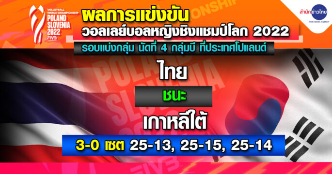 นักตบสาวไทย ชนะ เกาหลีใต้ 3-0 เซต ขยับขึ้นรั้งอันดับ 2 ของกลุ่มชั่วคราว ในศึกวอลเลย์บอลหญิงชิงแชมป์โลก 2022 รอบแรก