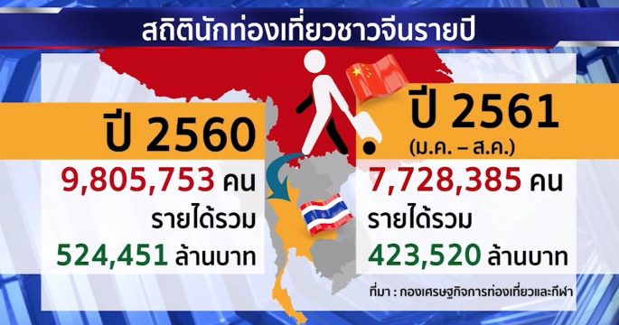 รัฐบาลงัดหลายมาตรการดึงนักท่องเที่ยวจีนกลับไทย ทั้งเตรียมจัดงานไทยแลนด์แกรนด์เซล จับมือสายการบินลดราคาพิเศษบินตรงมายังไทย ยกเว้นค่าธรรมเนียมวีซ่าบางประเภท รวมถึงเตรียมความพร้อมด้านความปลอดภัยเพื่อรองรับนักท่องเที่ยว