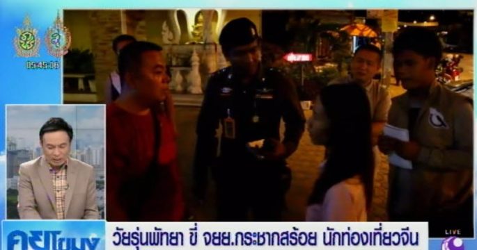 วัยรุ่นพัทยาสวมหมวกไอ้โม่งขี่รถจักรยานยนต์กระชากสร้อยคอทองคำนักท่องเที่ยวจีน มูลค่า 150,000 บาท หลบหนีลอยนวล