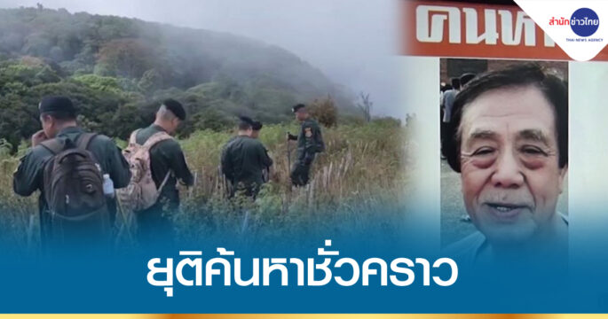 เจ้าหน้าที่ยุติการค้นหานักท่องเที่ยวชาวญี่ปุ่น วัย 82 ปี ที่หายตัวไปบนดอยอินทนนท์ จ.เชียงใหม่ เป็นการชั่วคราว เนื่องจากฝนตก-หมอกลง เกรงไม่ปลอดภัย โดยจะค้นหาใหม่พรุ่งนี้