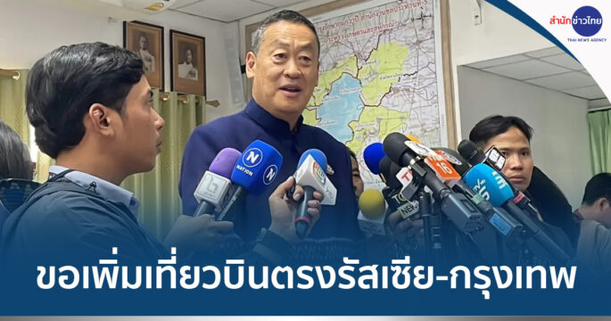 นายกฯ เผยเตรียมคุยการบินไทยขอเพิ่มเที่ยวบินตรงรัสเซีย- กรุงเทพ หลังรับรายงานนักท่องเที่ยวรัสเซียหนีหนาวมาเที่ยวไทยจำนวนมาก ชี้หลังจากขยายวันเพิ่มขึ้น คาดเข้าไทยกว่า 1 ล้าน