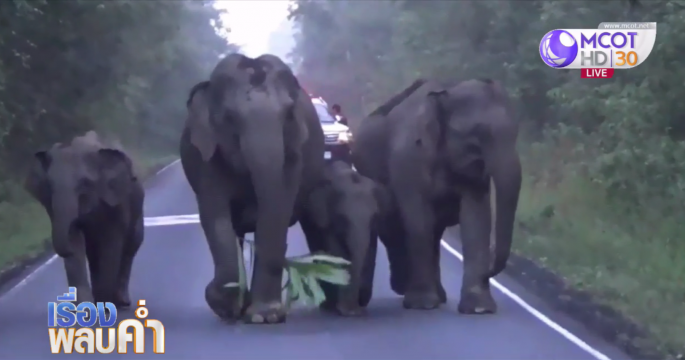 เตือนนักท่องเที่ยวระวังโขลงช้างป่าเขาใหญ่ ฝั่ง จ.นครราชสีมา ออกมาเดินตามถนนและทางขึ้นเขา