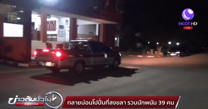 ตำรวจบุกทลายบ่อนโปปั่นในป่าละเมาะ ที่จ.สงขลา รวบนักพนัน 39 คน พร้อมของกลางอุปกรณ์การเล่น เงินสด ชิพแทนเงินสด รถยนต์และจักรยานยนต์กว่า 20 คัน