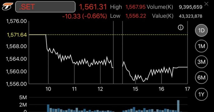 กรุงเทพฯ 11 ส.ค. – ตลาดหลักทรัพย์ปิดวันนี้ที่ระดับ 1,561.31 จุด ลดลง 10.33 จุด หรือร้อยละ 0.66 มูลค่าการซื้อขาย 43,323.88 ล้านบาท ผู้สื่อข่าวรายงานว่า การซื้อขายหุ้นวันนี้ ดัชนีหุ้นไทยเคลื่อนไหวในแดนลบตลอดทั้งวัน โดยดัชนีแตะจุดสูงสุดที่ 1,567.95 จุด และแตะจุดต่ำสุดที่ระดับ 1,556.22 จุด นายสุโชติ ถิรวรรณรัตน์ ผู้จัดการฝ่ายวิจัย บล.เคจีไอ (ประเทศไทย) […]