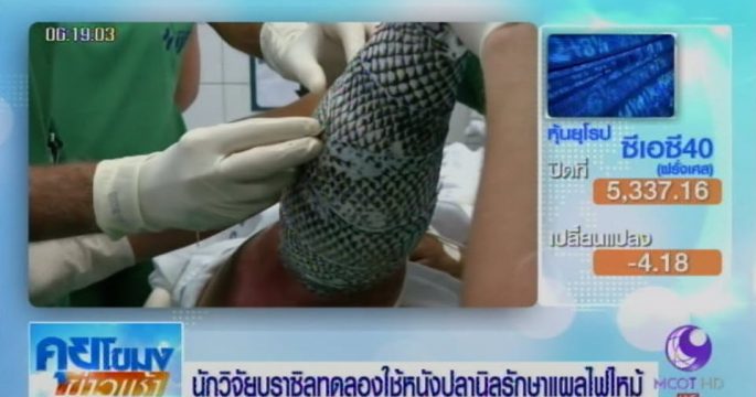 นักวิจัยในบราซิลทดลองใช้หนังปลานิลรักษาแผลไฟไหม้ ช่วยลดความเจ็บปวด ประหยัดค่ารักษา ป้องกันแผลติดเชื้อแบคทีเรียถึง 75% และช่วยให้แผลหายเร็วขึ้น