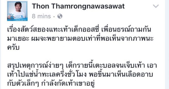 นักวิชาการทางทะเลโพสต์ผ่านเฟซบุค คาดสัตว์แทะเท้าเด็กออสซี่เป็นกลุ่มแอมฟิพอด ที่มีอยู่ตามหาดทราย น้ำทะเล ซึ่งประเทศไทยก็มี ไม่ใช่สัตว์พันธุ์ใหม่หรือตัวกลายพันธุ์