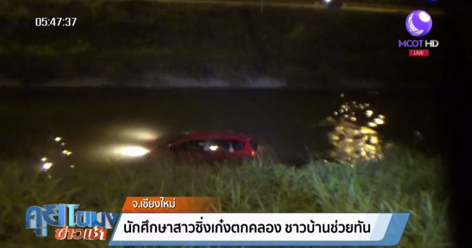 นศ.สาวขับเก๋งตกคลองชลประทานเชียงใหม่-พลเมืองดีช่วยทัน