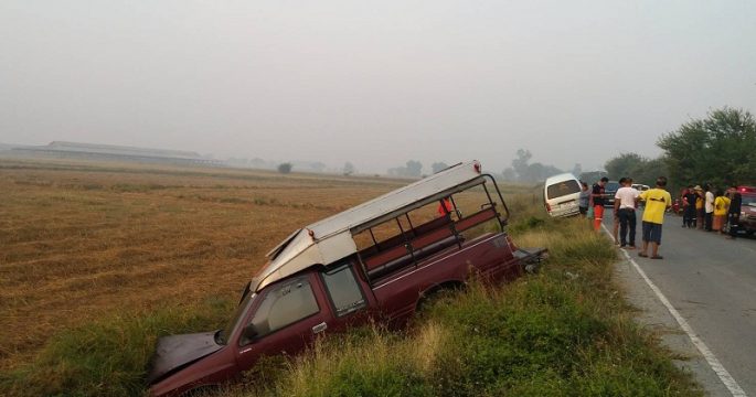 เกิดอุบัติเหตุรถตู้รับ-ส่ง นักเรียนชนประสานงากับรถกระบะ จนไฟลุกไหม้รถตู้นักเรียน เจ็บสาหัสเกือบ 20 ราย