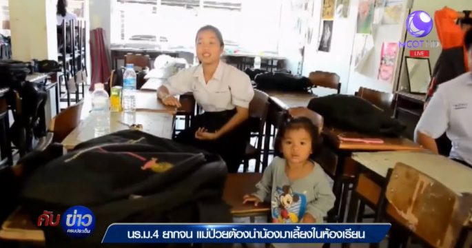 นักเรียน ม.4 ยากจน-แม่ป่วยต้องนำน้องมาเลี้ยงในห้องเรียน