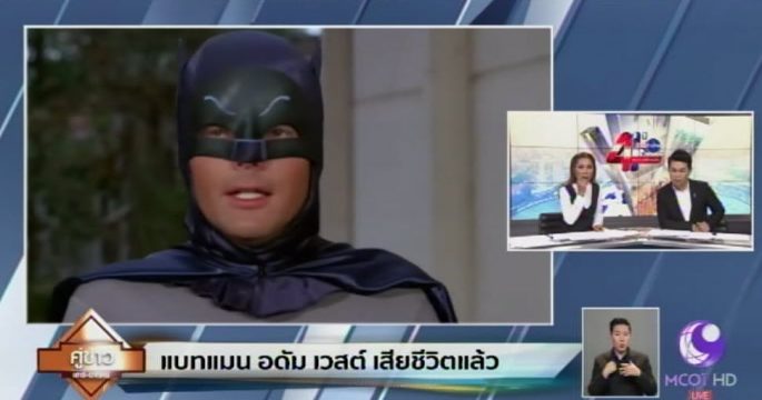 อดัม เวสต์ นักแสดงชาวอเมริกันที่รับบทเป็น แบทแมน หรือ มนุษย์ค้างคาว ในภาพยนตร์ซีรีส์ทางโทรทัศน์ ในยุค 1960ได้เสียชีวิตลงแล้วด้วยวัย 88 ปี
