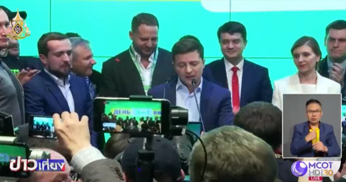 เอ็กซิทโพลระบุนายเซเลนสกี นักแสดงตลก ได้รับชัยชนะอย่างถล่มทลายในการเลือกตั้งประธานาธิบดีของยูเครน ทั้งนี้ว่าที่ผู้นำคนใหม่เผยจะไม่ทำให้ชาวยูเครนผิดหวัง พร้อมจะเจรจาความขัดแย้งกับรัสเซีย