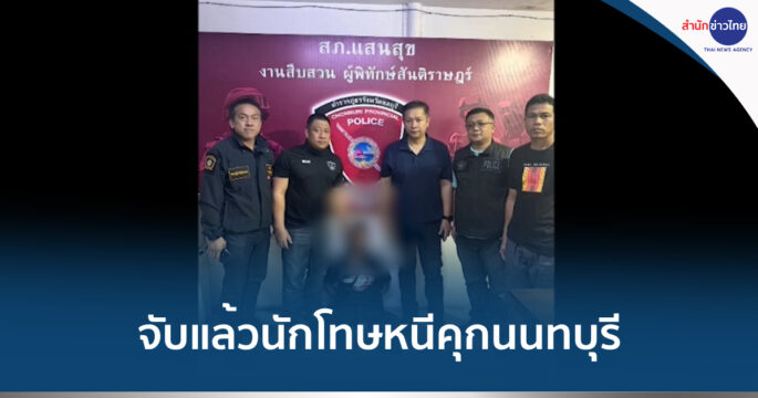จับได้แล้วนักโทษชายหนีเรือนจำจังหวัดนนทบุรี ระหว่างออกกองงานภายนอก จนมุมที่หน้าโรงแรมแห่งหนึ่งย่านบางแสน จ.ชลบุรี ก่อนนำตัวมาสอบสวนและดำเนินคดีที่ สภ.เมืองนนทบุรี