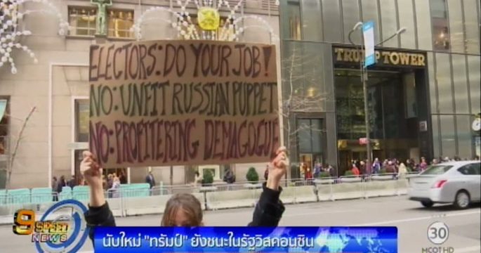 คณะกรรมการการเลือกตั้งรัฐวิสคอนซิน สหรัฐ ประกาศผลการนับคะแนนเลือกตั้งประธานาธิบดีสหรัฐใหม่ นายโดนัลด์ ทรัมป์ มีชัยเหนือนางฮิลลารี คลินตัน กว่า 22,000 คะแนน