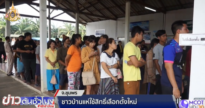 ชาวบ้านแห่ใช้สิทธิเลือกตั้ง ส.ส.ใหม่ ที่หน่วยเลือกตั้งที่ 9 เขตเลือกตั้งที่ 2 หมู่ 7 ต.สองพี่น้อง อ.ท่าแซะ จ.ชุมพร หลังมีปัญหาจำนวนผู้มาใช้สิทธิไม่ตรงกับจำนวนบัตรลงคะแนน
