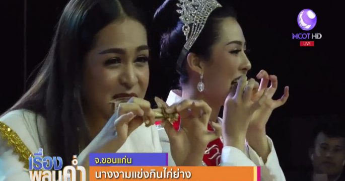 อำเภอเขาสวนกวาง จัดแข่งขันทำอาหารจากไก่ย่าง ไฮไลท์ของงานอยู่ที่การแข่งขันกินไก่ย่าง ของบรรดานางงามเขาสวนกวางที่ได้อันดับ 1-3 ประจำปี 2561