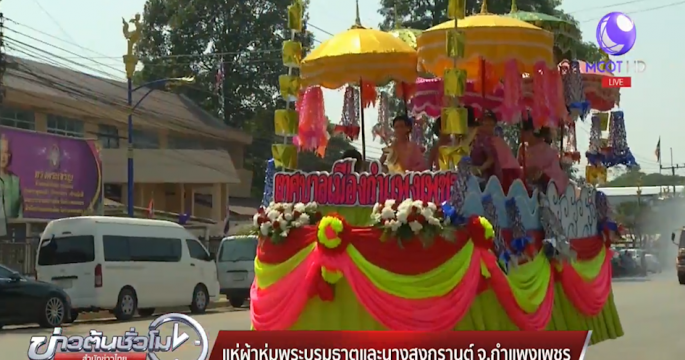 ที่กำแพงเพชรช่วงบ่ายวันนี้ มีประเพณีสำคัญนั่นคือ ขบวนแห่ผ้าห่มพระบรมธาตุและนางสงกรานต์