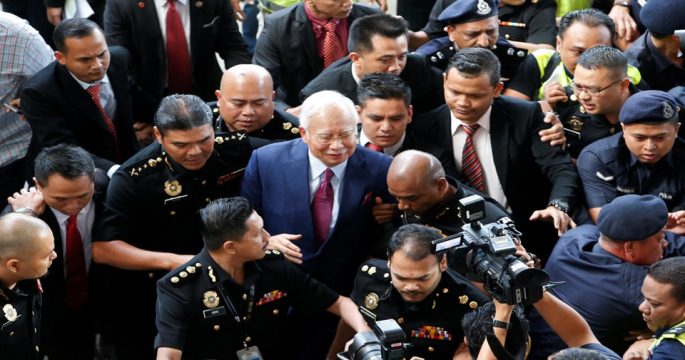 นายนาจิบ ราซัค อดีตนายกรัฐมนตรีมาเลเซียถูกตั้งข้อหาอาญา 3 กระทง จากการทุจริตอื้อฉาวในกองทุนพัฒนามาเลเซีย (1MDB)