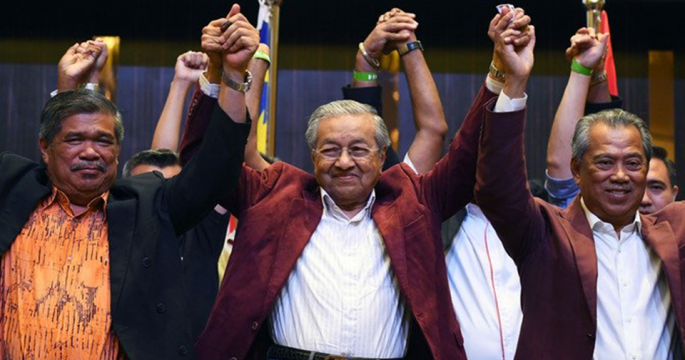 ดร.มหาเธร์ โมฮัมหมัด อดีตนายกรัฐมนตรีมาเลเซีย สร้างประวัติศาสตร์นำพรรคฝ่ายค้านคว้าชัยชนะในการเลือกตั้งทั่วไปเหนือพรรครัฐบาลของนายกรัฐมนตรีนาจิบ ราซัค ได้แบบล็อกถล่ม