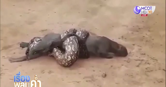 เปิดคลิปนาทีชีวิต! งูรัดแมวป่าและกำลังจะเขมือบเป็นอาหาร แมวป่าดิ้นทุรนทุราย แต่หนีไม่ได้ นอนแน่นิ่งใกล้หมดลม ก่อนที่คนจะมาเห็นและช่วยได้