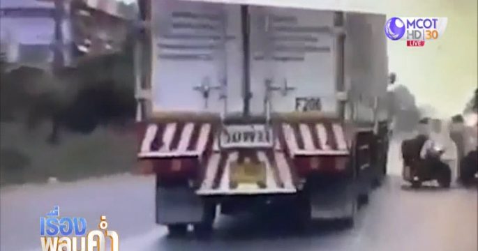 นาทีระทึก! รอดปาฏิหาริย์หนุ่มขี่บิ๊กไบค์แซงรถบรรทุก