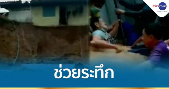เจ้าหน้าที่กู้ภัยและชาวบ้านบางระกำ จ.พิษณุโลก เร่งช่วยชายวัย 79 ปี ตกลงไปในแม่น้ำยม ถูกแผ่นปูนทับขา หลังเกิดดินสไลด์บริเวณห้องครัว ไหลลงแม่น้ำยม