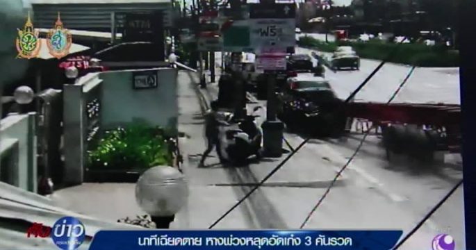 นาทีเฉียดตาย!! หางรถพ่วงหลุดอัดรถเก๋ง 3 คันรวด บนถนนเทพารักษ์ วงจรปิดจับภาพชัด รถเก๋งรอดหวุดหวิด