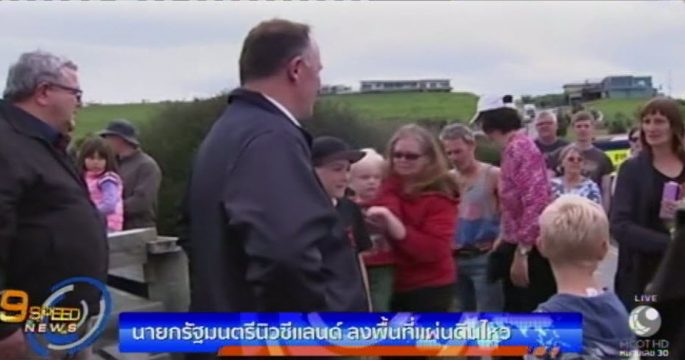 นายกรัฐมนตรีจอห์น คีย์ ของนิวซีแลนด์ เดินทางไปตรวจสภาพพื้นที่ ซึ่งได้รับผลกระทบจากแผ่นดินไหว 7.8 แม็กนิจูด บนเกาะใต้ เมื่อช่วงเช้าที่ผ่านมา
