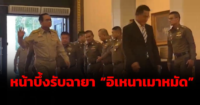 พลเอกประยุทธ์ นายกรัฐมนตรี และ รมว.กลาโหม ปัดตอบได้รับฉายา “อิเหนาเมาหมัด” โบกมือหน้าเครียด ก่อนประชุม ก.ตร. พิจารณาเพิ่มเงินค่าตำแหน่งตำรวจงานป้องกันปราบปราม สืบสวน และจราจร