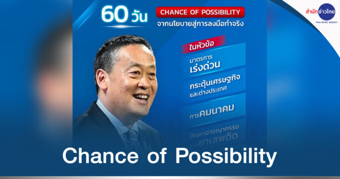“เศรษฐา” โพสต์ชวนติดตามรายการพิเศษ “Chance of Possibility จากนโยบายสู่การลงมือทำจริง 60 วัน ภายใต้รัฐบาลนายกฯ เศรษฐา ทวีสิน” คืนนี้