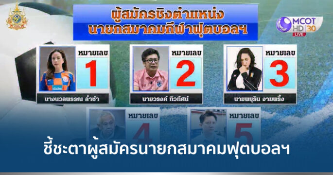 วันพรุ่งนี้ (8 ก.พ.) สมาคมกีฬาฟุตบอลแห่งประเทศไทย จัดเลือกตั้งนายกสมาคมกีฬาฟุตบอลแห่งประเทศไทย คนที่ 18 ซึ่งมีผู้สมัครลงชิงชัย 5 คน