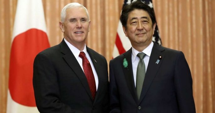 นายกรัฐมนตรีชินโซ อาเบะของญี่ปุ่นกล่าวเรียกร้องให้ใช้แนวทางสันติเพื่อคลี่คลายความตึงเครียดกับเกาหลีเหนือ ระหว่างเริ่มเจรจากับนายไมค์ เพนซ์ รองประธานาธิบดีสหรัฐ