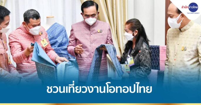 นายกฯ ชมนิทรรศการประชาสัมพันธ์งานโอทอปไทย สู้ภัยโควิด-19 เทิดทูนสมเด็จฯ พระบรมราชชนนีพันปีหลวง ทรงส่งเสริมผ้าไทย เชิญชวนประชาชนอุดหนุนผลิตภัณฑ์ชุมชน