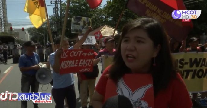 ชาวฟิลิปปินส์เดินขบวนประท้วงใกล้สถานทูตสหรัฐในกรุงมะนิลา ประณามเหตุการณ์ที่สหรัฐส่งโดรนสังหารผู้บัญชาการทหารคนสำคัญของอิหร่าน