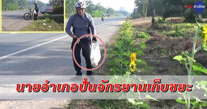 ชื่นชม! นายอำเภอปั่นจักรยานเก็บขยะ