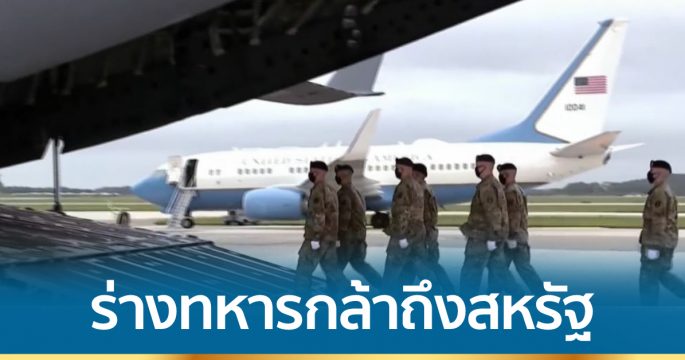 ร่างทหารและนาวิกโยธินสหรัฐ 13 นาย ที่เสียชีวิตจากเหตุโจมตีด้วยระเบิดฆ่าตัวตายที่สนามบินกรุงคาบูล ประเทศอัฟกานิสถาน สัปดาห์ก่อน ถูกลำเลียงกลับถึงสหรัฐ
