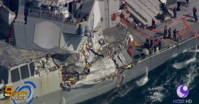 กองเรือภาค 7 ของสหรัฐ เผยลูกเรือ 2 คน ซึ่งรวมถึงกัปตันของเรือพิฆาตยูเอสเอสฟิตส์เจอรัลด์ ที่บาดเจ็บจากเหตุเรือพิฆาตชนกับเรือขนส่งสินค้า ถูกนำตัวกลับเข้าฝั่งเพื่อรักษาอาการบาดเจ็บ